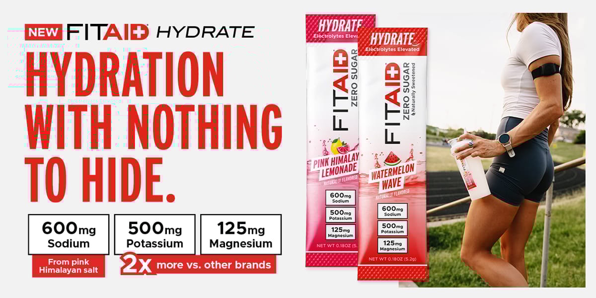 FITAID Hydrate is your new sidekick for clean hydration all summer long. No sugar. No junk. Just balanced electrolytes and delicious flavors. Whether you’re training for a marathon, coaching your kids’ soccer team, or just trying to make it through leg day, FITAID Hydrate is everything you need and nothing you don't.