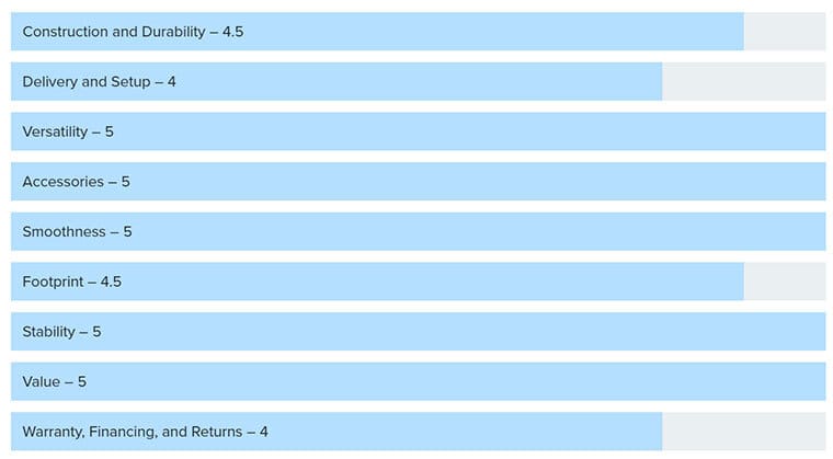 Excellent warranty: REP offers a lifetime warranty and a one-year warranty for the machine parts (pop-pins, pulleys, bearings, and cables).